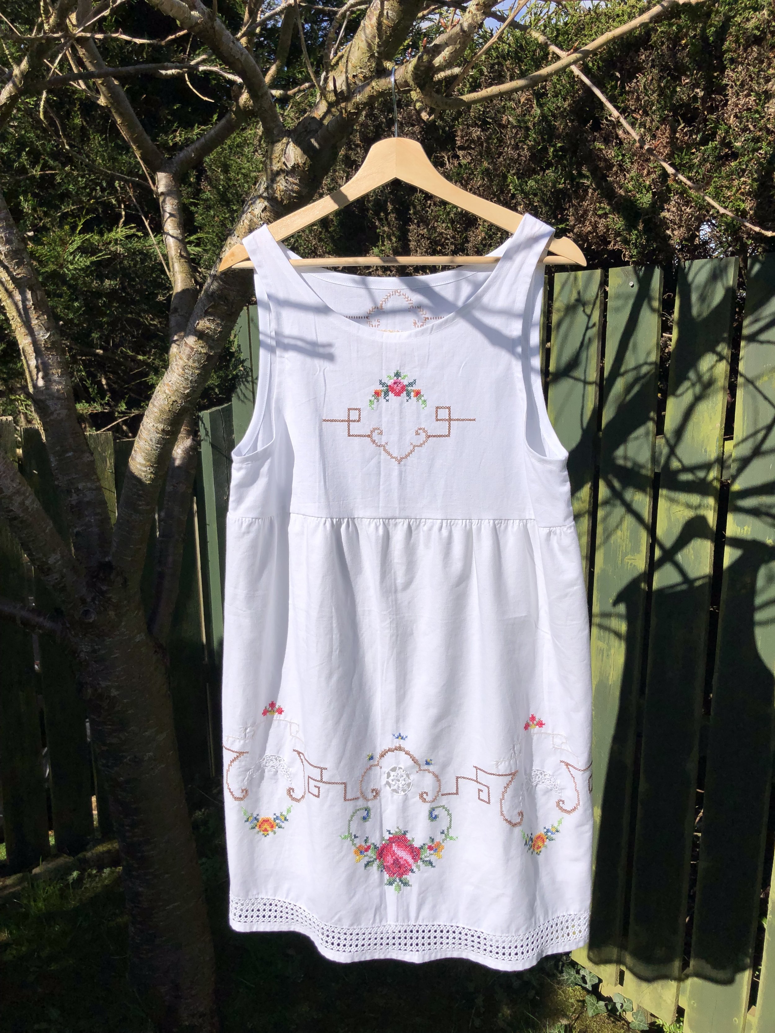 I love repurposing vintage textiles, taking a piece of fabric which has been sitting unused and unloved in a cupboard and with a change of use creating a beautiful individual piece of heirloom clothing. Not only a sustainable fashion choice but also a unique one.